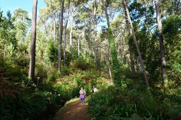 Meie teekond viib läbi loorberimetsa ja saame teada, et need loorberilehed ei kõlbagi pattapanemiseks ega toidu maitsestamiseks. Kuuleme ka lugu sellest, et niipea, kui portugallased siin asustamata saarel kanda kinnitasid, pistsid nad algatuseks loorberimetsad lihtsalt põlema – ikka selleks, et põllumaad tekitada. Suur tulekahju olevat saarel möllanud lausa seitse aastat jutti, enne kui sellele piir suudeti panna. Tulemus oli kohutav, sest hävines suur osa endeemilisest taimestikust. Tänapäeval on saare loorberimetsad õnneks kaitse alla võetud ja tegeletakse aktiivselt ka sellega, et võõrliigina sisse toodud eukalüpt teistele puudele ruumi jätaks. Matkaraja servas kasvab mõni kohvipõõsas, söögiks kõlblikke kastaneid, kauneid belladonnasid ja lembeliiliaid. Lembeliiliad on oma õitsemist hetkel juba lõpetamas ja kui nende rohkuse nägemine on eesmärgiks, siis peaks matka ette võtma ehk septembri alguse poole. Meie teekond kulgeb osalt ka mööda külatänavat ja vaatevälja jäävad õuna-, mango-, papaia-, avokaado-, sidruni- ja apelsinipuud ning kiivid. Väidetavalt olla kohalikud õunad, mis olid väljanägemiselt nagu meie sibulõunad, hästi magusad, kui valmis saavad … no, kes teab, äkki ongi tõsi, sest mangod ja papaiad olid küll väga head.