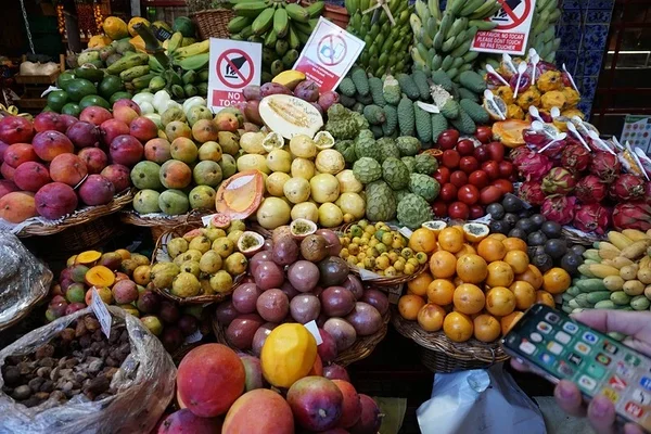 Pärast väikest jalutuskäiku jääb meie teele ajalooline turuhoone, kus pilku püüavad kõikvõimalikud värvikirevad eksootilised viljad. Enamik neist on kasvanud siinsamas saarel. Lettidel on korrapärastesse hunnikutesse laotud mangod, viinamarjad, erinevat sorti maracujá’d, monstera viljad, banaanid, avokaadod, kiivid, papaiad, melonid …Ülal kohe banaanide all on rohelised monstera viljad.