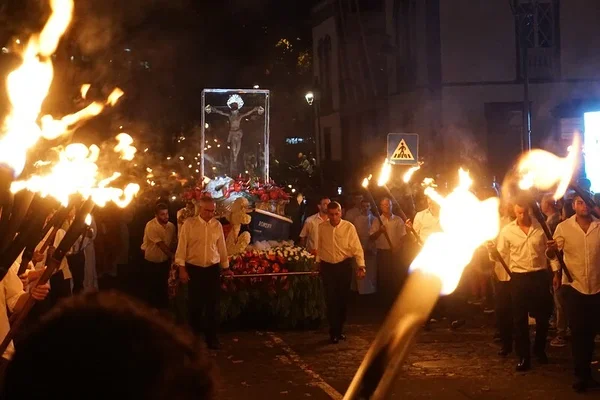 Protsessiooniga on liitunud inimesed, kes on ise kogenud imet. Osad neist on kogenud tervenemist, teised on saanud jälle kauaoodatud lapse või tundnud midagi muud imelist oma elus, mida nad seostavad pühakujuga. Inimesed liiguvad kahes reas ja protsessiooni lõpus tulevad pidulikus riietuses tõrvikuid kandvad kalurid, kirikutegelased ning pühakuju spetsiaalsel raamil kandvad mehed. On väga suurejooneline vaatepilt sellest, kuidas mäekülgedel ümber linnakese lookleb serpentiinina tuledest hõõguv rada.