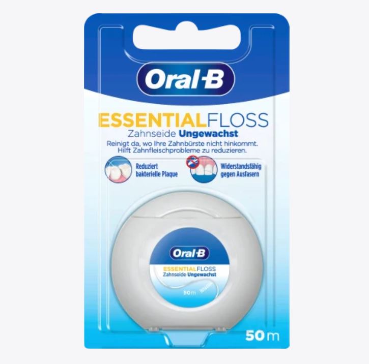 Vahatamata Oral B hambaniit Essential Floss on vastupidav, libiseb lihtsalt hammastevahelisse piirkonda ja hammaste ja igemete vahelisse alasse ja aitab sealt tõrksat mustust eemaldada. Vahatamata pind püsib kindlalt näppude vahel. Hambaniidi pidev otstarbekohane kasutamine võib ära hoida hambavalu ja kalli hammaste parandamise. Aitab hoida hambad ja igemed tervena.