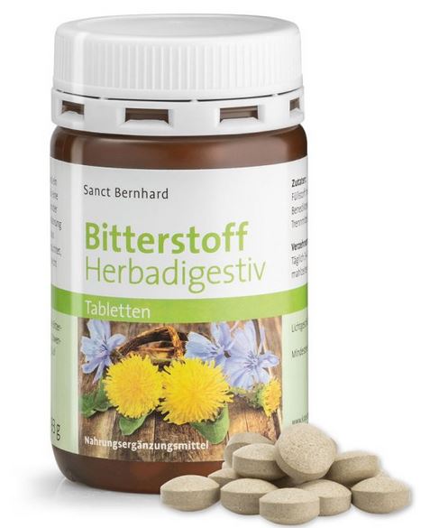 Kräuterhaus Sanct Bernhardi seedimist soodustavad mõruainete tabletid Herbadigestiv varustavad organismi emajuure, ohakaürdi, võilille ja siguri mõruainetega, mis toetavad loomulikul viisil seedimist.