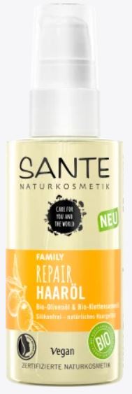 oliivi- ja takjaseemneõliga ning mõeldud stressis ja kahjustatud juustele. See juukseõli taastab ja taaselustab juukseid väga intensiivselt. Looduslikult tõhus koostis on efektiivne lõhenenud juukseotste ja juuste katkemise vastu võitlemisel. Sante taastav juukseõli on juukseid siluva toimega ja puhta loodusliku lõhnaga ning aitab tagada teie juuste elastsuse ja sära.