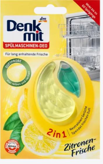 Denkmiti nõudepesumasina deodorant annab kauakestva sidrunilõhna. Rohelises kambris olev toimeainete kombinatsioon neutraliseerib ka ebameeldivad lõhnad, selle asemel, et neid lihtsalt katta. Toodet jätkub