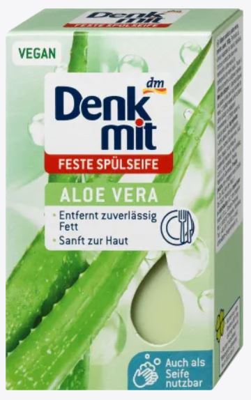 Denkmiti nõudepesuseep Aloe veraga põhineb taastuvatel toorainetel. Selle seebi koostis pakub alternatiivi tavapärasele nõudepesuvahendile. Taimsed koostisosad nagu rapsi-, oliivi- ja kookosõli ning Aloe vera ekstrakt ei taga mitte ainult nõude puhtust, vaid ka täiendavat hoolitsust teie kätele. Seepi saab kasutada kätepesuks ja sihipäraseks nõudepesuks. Tootel on värske Aloe vera lõhn. Kasutage tahket seepi ja vähendage plastist jäätmeid!
