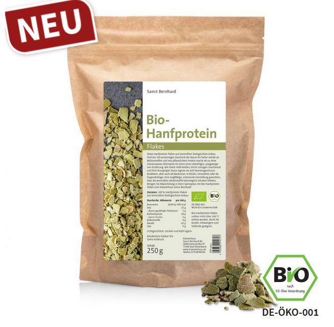 krõmpsuva tekstuuriga, kergelt hapukas ja pähkline maitseKräuterhaus Sanct Bernhardi maheviljelusest pärit kanepivalgu helbeid ei tohiks kuumutada üle 180 °C. Ei sobi lastele, rasedatele ja imetavatele naistele. Kanepi (Cannabis sativa) proteiinipulber on samade omadustega, mis kanepiseemned, kuid lisaks väga valgurikas.