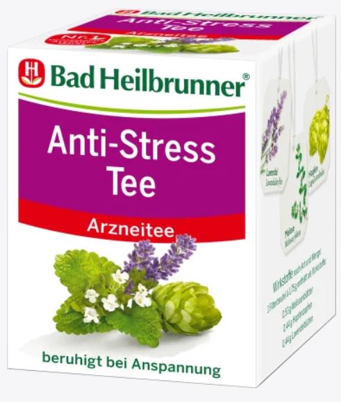 Bad Heilbrunner stressivastane tee leevendab pingeid ja närvilisust. See teesegu melissi, humala ja lavendliga tagab sisemise rahu ning leevendab uinumisprobleeme ja stressi.